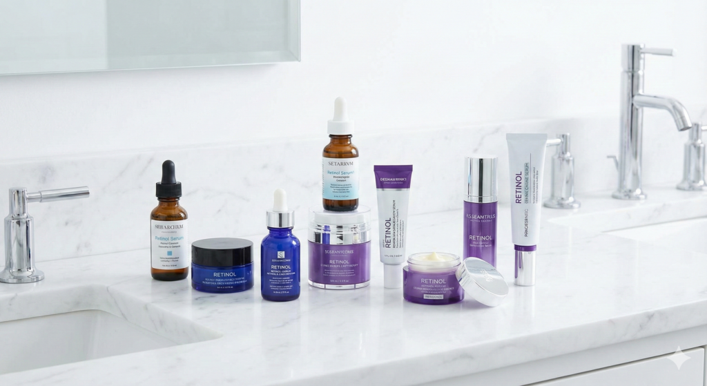 ・刺激が少ない低濃度レチノールを週数回:数日〜1週間程度の休止が提案されることが多い